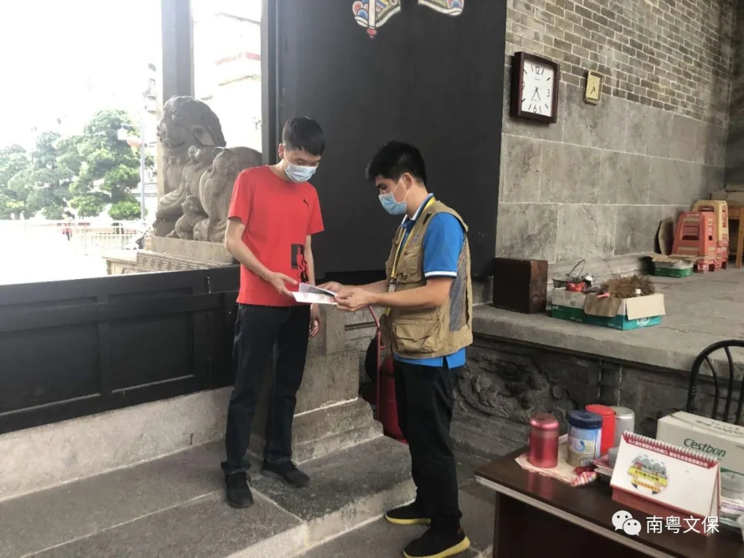 为了使文物保护单位内的安全管理人员对文物建筑消防安全管理工作有进一步的认识,广州市文物保护监督员配合分发文物建筑消防安全宣传资料,通过现场解答消防安全的相关法律法规、文物建筑安全用电、消防安全知识等,进一步提高我市博物馆和文物建筑安全管理人员的消防安全管理意识。